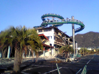 東洋一のウォータースライダー!が売りで 温泉ブームに便乗し賑わいを見せた バブル経済の崩壊と道ずれに閉館して6年 地元市長も手を出さなかった物件を 得体の知れない業者が解体工事を始めた 何だか不気味な壊し方をしている・・・ |